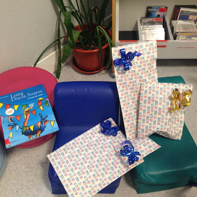 Convidámos as crianças do 1ºe 2ºano da EB Prof. Manuel Martins Alves para a "Festa de Anos" da avestruz Catrapus, A festa foi na Biblioteca escolar!
